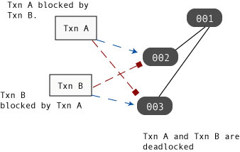 For example, if Txn A is blocked by Txn B at the same time Txn B is blocked by Txn A then the threads of control containing Txn A and Txn B are deadlocked; neither thread can make any forward progress because neither thread will ever release the lock that is blocking the other thread.