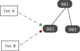 For example, if Txn A holds a write lock (an exclusive lock) on object 002, then if Txn B tries to obtain a read or write lock on that object, the thread of control in which Txn B is running is blocked:
